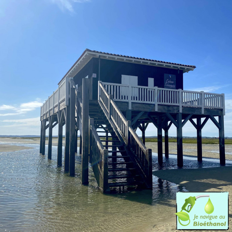 Une des premières cabanes tchanquées de l'île aux oiseaux fut construite en 1883 par l'ostréiculteur Martin Pibert pour surveiller ses parcs à huîtres. Une tempête la renversa en 1943, mais ses piliers en bois sont encore visibles à marée basse. En 1945, une autorisation fut donnée à un charpentier-menuisier d'Arcachon de construire une «habitation de plaisance» non loin de l'emplacement de celle qui venait d'être détruite, c'est une des cabanes que nous connaissons aujourd'hui. La seconde fut construite en 1948 par un entrepreneur en bâtiments, Julien Longau. Le Conservatoire du Littoral, à qui le site appartient, en a donné la totalité en gestion à la commune de La Teste-de-Buch, qui dispose d'une autorisation d'occupation temporaire sur une des cabanes tchanquées.